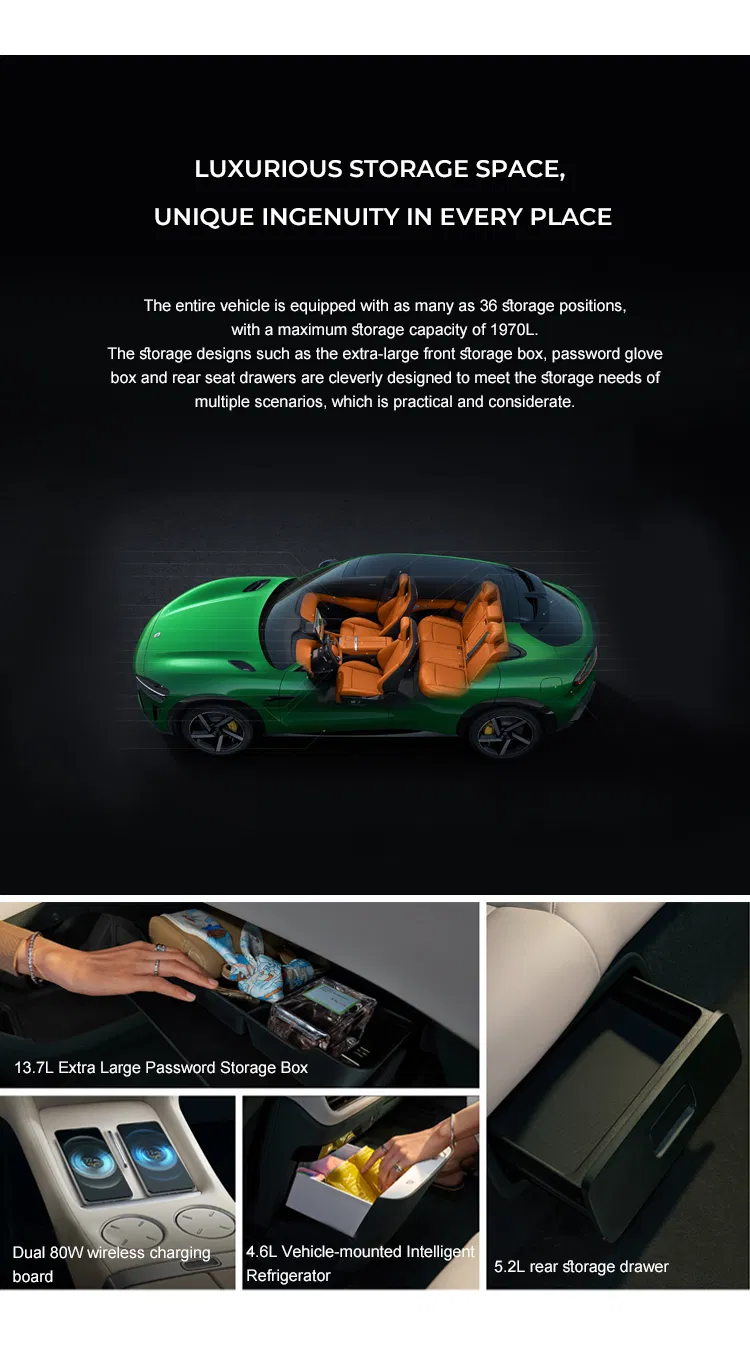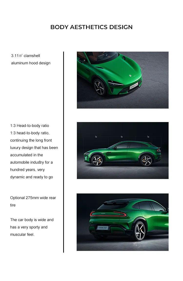 ယာဉ်သည်စလစ်နောက်ဘက်ခန္ဓာကိုယ်ဒီဇိုင်းကိုလက်ခံသည်။ ရှေ့မျက်နှာသည်လက်ဝါးကပ်တိုင်ပုံသဏ် strip ာန်ဖြင့်ပိတ်ထားသောဒီဇိုင်းကိုလက်ခံသည်။ ကားတစ်စီးလုံး၏အရှည်, အကျယ်နှင့်အမြင့်မှာ 4999 * 1996 * 1608 (1600) မီလီမီတာရှိပြီး 3000 မီလီမီတာရှိသည်။ ဘေးထွက်သည်လှပပြီးမျက်နှာမရှိသောအိမ်နှင့်လျှို့ဝှက်ထားသောလက်ကိုင်ဒီဇိုင်းတပ်ဆင်ထားပြီး၎င်းသည်လှပပြီးလေဖြတ်ခြင်းကိုလျှော့ချနိုင်သည်။ ကားသည်သေးငယ်သောဖန်သားပြင်သုံးခုဖြင့်ဖွဲ့စည်းထားသော "Sky screen screen screamic display system" ကိုလက်ခံသည်။ သုံးစကားသုံးစတီယာရင်သည်စက်ကိရိယာချို့တဲ့ယန္တရားတပ်ဆင်ထားသည်။ ၎င်းသည်လည်ပတ်ရန်အဆင်ပြေသည်။ ကား၏ထိုင်ခုံများသည် Napta သားရေဖြင့်ဖုံးအုပ်ထားပြီးရှေ့ပြပွဲသည်တစ် ဦး ကပေါင်းစည်းထားသောအားကစားထိုင်ခုံတစ်ခုဖြစ်ပြီးနှစ်ဆသုည - ဆွဲငင်အားနေရာများနှင့် 10 ချက်သောအနှိပ်ခံခြင်းနှင့် 10 ချက်ပါသောအနှိပ်ခံခြင်းနှင့်အတူတပ်ဆင်ထားသည်။ နောက်ဘက်အတန်းက 100 ဒီဂရီ ~ 135 ဒီဂရီလျှပ်စစ်မတူသောညှိနှိုင်းမှုကိုထောက်ပံ့သည်။ ထို့အပြင် Xiaomi Yu7 တွင် 141l ပမာဏနှင့်အတူစည်အပါအ 0 င်သိုလှောင်ရာနေရာ 36 ခုရှိသည်။