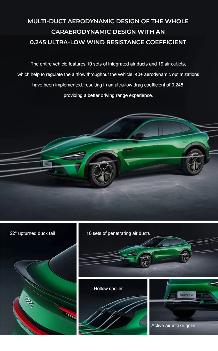 Xiaomi Yu7 ၏အားသာချက်မှာ Xiaomi ၏စမတ်အိမ်ဂေရီ၏ "Human-home internonnection နှင့်အားကစားညှိနှိုင်းမှုမှရရှိသောအင်အားကြီးစွမ်းအားကိုနားလည်သဘောပေါက်ရန် Xiaomi ၏အိမ်တွင်းဂေဟဗေဒအပေါ်မူတည်သည်။ လေးဘီး drive သည်မြင့်မားသော power version သည်လျင်မြန်စွာအရှိန်မြှင့ ်. ထူးချွန်စွမ်းဆောင်ရည်ရှိသည်။ 800v High-voltage ပလက်ဖောင်းသည်အလွန်ကောင်းမွန်သောအားဖြင့်အားသွင်းနိုင်သည့်အမြန်နှုန်းနှင့်ခံနိုင်ရည်ကိုရရှိစေသည်။
